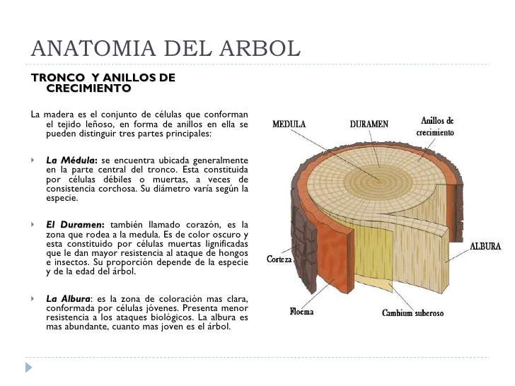 Toda la vida del árbol está concentrada en una banda de células no más gruesa que una película, que separa la corteza de la madera. Allí aparece el cambium, el único que tiene poder para formar nueva madera. Si se destruye alrededor de un tronco el árbol muere.