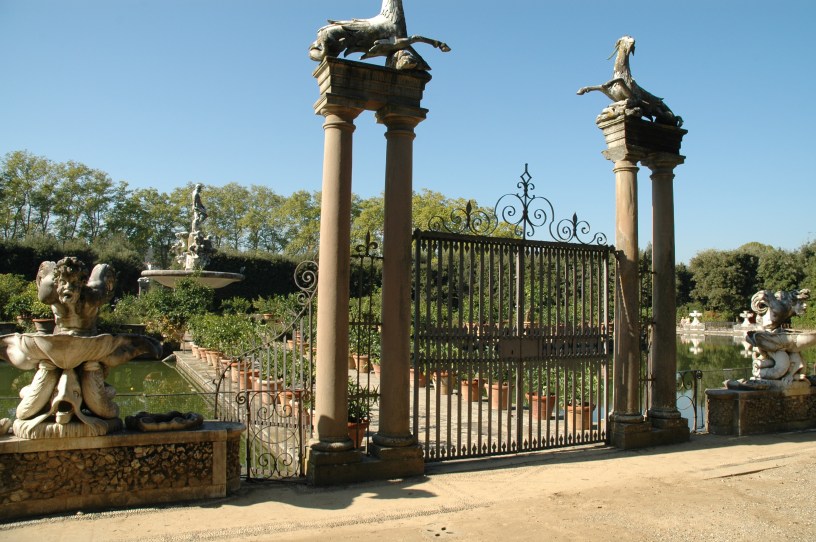 A la entrada de Porta Romana hay un importante Perseo Vincenzo Danti , ya en la villa Médicis de Pratolino , rodeado de boj exedra donde también hay un sarcófago romano con los trabajos de Hércules.