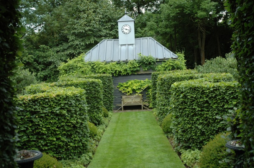 Por ejemplo el jardín blanco ha sido transformado en un jardín clásico el pasado otoño. También tiene su jardín a la inglesa con sus columpios adaptados y sus parterres de flores rosas y lilas. A ambos lados setos de tejos plantados en formas geométricas. En el centro un simple estanque octogonal.