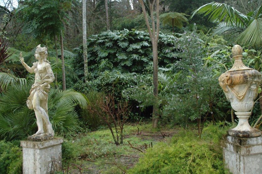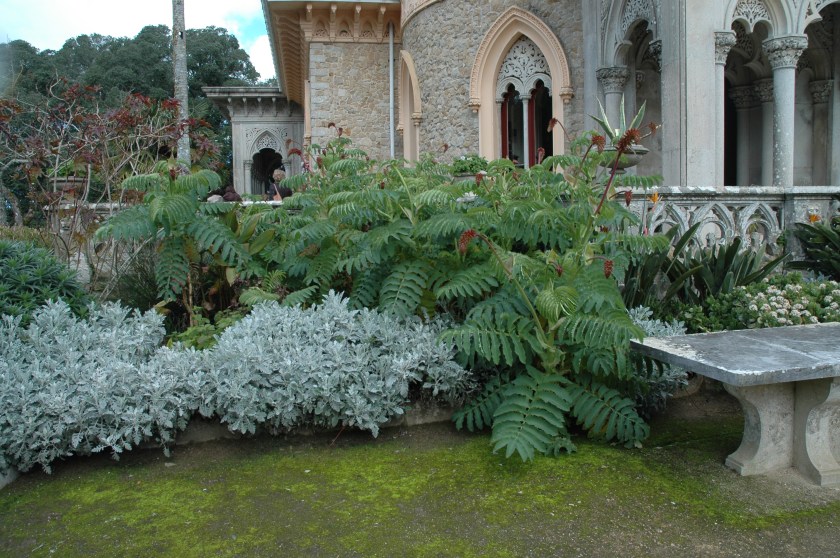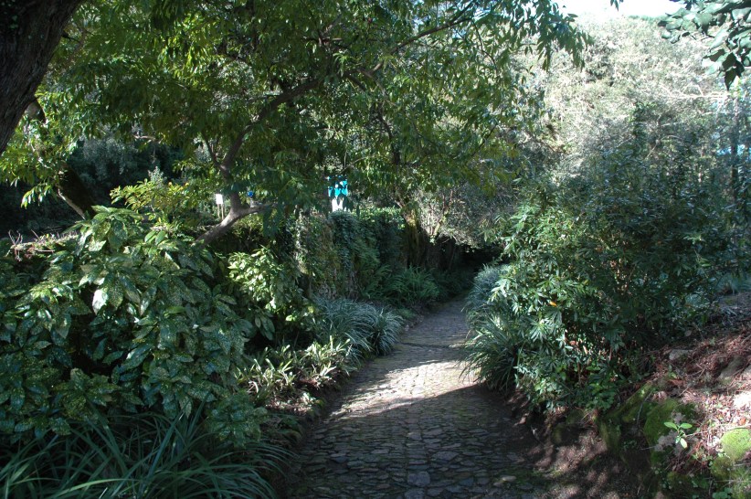 Cuando llegamos por primera vez a la puerta del palacio se desciende hacia el sendero de los jardines de Monserrate, el jardín es un bosque salvaje, salpicado de locuras y árboles raros recogidos por Cook. Es el tipo de lugar que puedas imaginar que trolls y hadas están en casa.