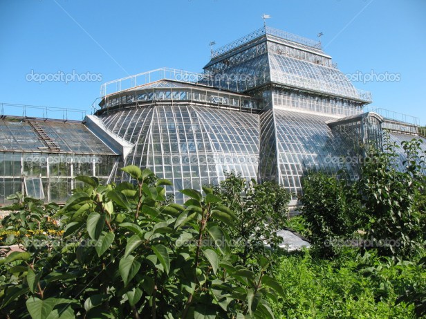 El jardín cuenta con 25 invernaderos construidos en 1823-1824. Ellos están numerados del 1 al 28 (No. 5 y No. 25 no existen; No. 10 y No. 11 se comparten). Algunos de ellos están abiertos a las visitas guiadas públicas, incluyendo las grandes colecciones de azaleas y otros de Ericaceae (No. 6), helechos (No. 15), cactus y otras plantas suculentas (No. 16), diversas plantas tropicales ( N ° 18), el alto efecto invernadero 23,5 m grande de las palmeras con una importante colección de orquídeas (Nº 26) y el invernadero con un estanque que contiene Victoria amazónica (n. ° 28). La flor de la noche del cactus Selenicereus grandiflorus , cultivado allí desde 1857, es un evento celebrado anunciado en los medios de comunicación y abierto al público en el invernadero 16 en junio y julio. Las colecciones de interior sufrieron pérdidas significativas durante el sitio de Leningrado , en 1941-1944; de 6.367 especies solamente 861 sobrevivieron..