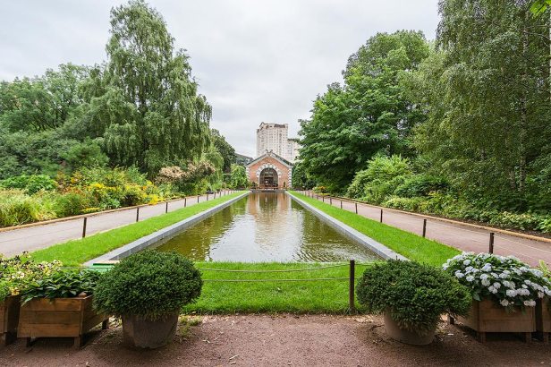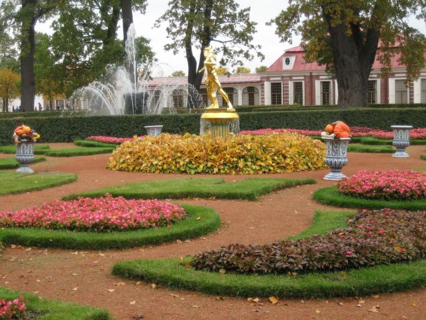 El jardín formal o regular fue diseñado en 1720 por los maestros holandeses de la jardinería de paisaje en tres parterres frente del Palacio Imperial. Al mismo tiempo, un espejo de agua se construyó en el tercer parterre, y no se realizaron dos estanques en el río que fluye desde la colina Vangazi : Alto (grande) y Mill (más tarde incluido en cascada de estanques más bajos).