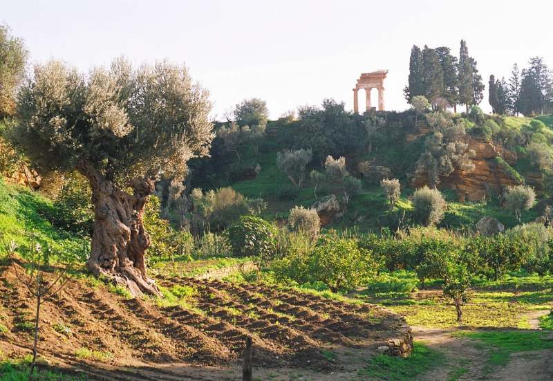 Una de las características típicas de Sicilia, que impacta al turista cuando se aleja de la costa, especialmente en el verano, es la sequedad y aridez del terreno. Es por esto que parece inconcebible que los antiguos hablaran de estas tierras como extremadamente fértiles y que las identificaran con figuras míticas como Ceres, Minerva, Diana, Dionisio; personajes representados con símbolos de la fertilidad, como el cereal, el olivo, bosques y vides.