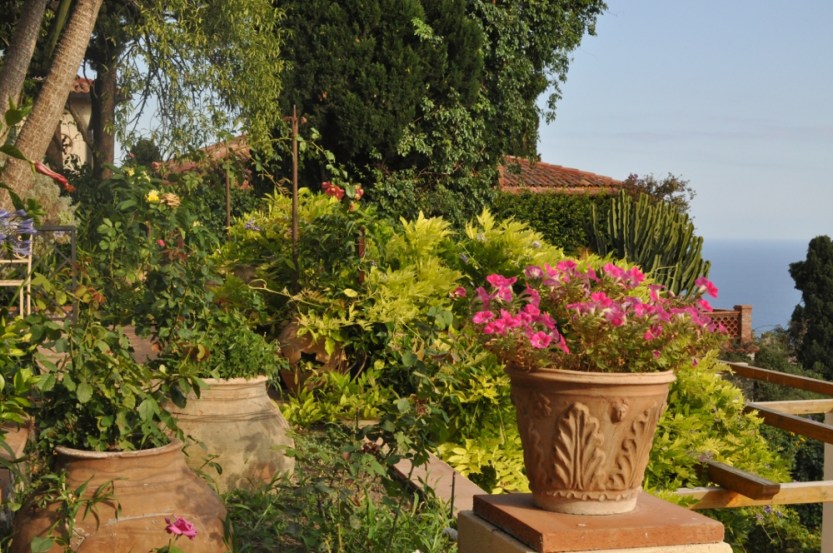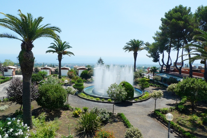 Plantas africanas y rosas inglesas se mezclan con una multitud de árboles de cítricos de Sicilia, en una increíble sinfonía, inusual de colores y perfumes, una emoción para todos los sentidos en un contexto singular paisaje dominado por la majestad del Etna y el mar de Sicilia.