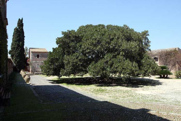 La casa principal, construida antes de 1693, año en que el terremoto que sacudió el este de Sicilia dañó la fachada, con vistas a lo que antes era un puerto, cerrado por grandes rocas cortadas por el hombre . A en forma de L, en dos plantas, enriquecidas con un hermoso portal y ventanas de piedra clara que se abren a una zona pavimentada en ladrillo, decorado con cuatro plantas de pomelo. A lo largo de la construcción crecerá 5 muestras de Cereus peruvianus aplicación., De América Central al sur, y una majestuosa .-Euphorbia canariensis. En la parte posterior, se encuentra la antigua posada, que una vez albergó a los cazadores, y una capilla que fue construida por los primeros propietarios de la finca, la Lanza Branciforte, dedicada a San Andrés, patrono de los pescadores.
