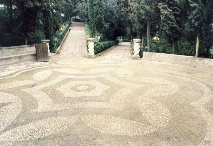«El jardín cuenta con bellos mosaicos bien conservados en muchas plantas más magníficas cerámicas perfecto estado de conservación.»