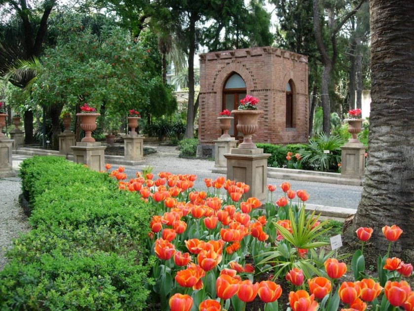 A partir de un estudio elaborado por el Departamento de Botánica de la Universidad de Palermo se han identificado 86 tipos de plantas, incluyendo 15 especies raras. Hay plantas de aligustre, palmeras de diferentes especies, araucarias, pinos, robles, un bosque de bambú y nolinas, especies que raramente se encuentran en jardines y parques en Sicilia. Los macizos de flores están bordeados por los arriates de boj, interrumpidos en varios puntos por los setos de laurel.