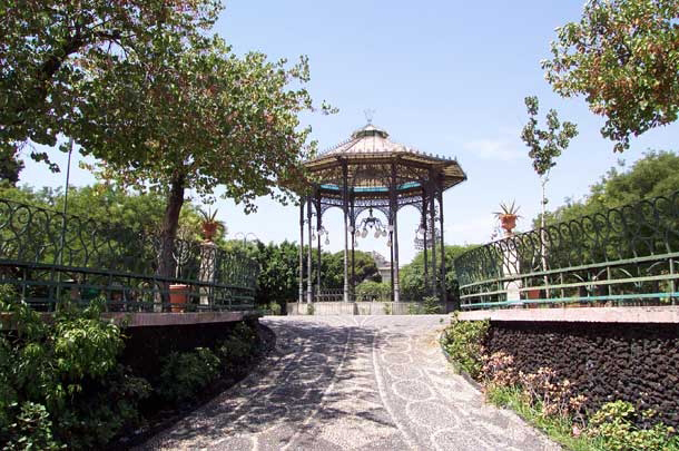 En el centro del jardín hay una etapa musical en estilo árabe diseñada por Salvatore Montalto, también cubierto por la mayólica típica policromada.