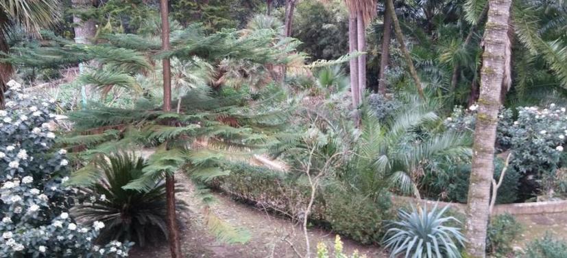 Entre las plantas presentes separa la presencia de un ejemplar de Podocarpo del Himalaya ( Podocarpus neriifolius ), un roble raro de origen mexicano el ( Quercus polymorpha ), una gardenia arborea imponente de África del Sur ( Gardenia thunbergia ). En la primavera se pueden observar las coloridas flores de Sophora secundiflora , por las flores púrpuras perfumadas que se alternan con inflorescencias amarillas de la Roldania petasitis , los de naranja Leonitis eonurus y las blancas de la Sparrmannia africana .