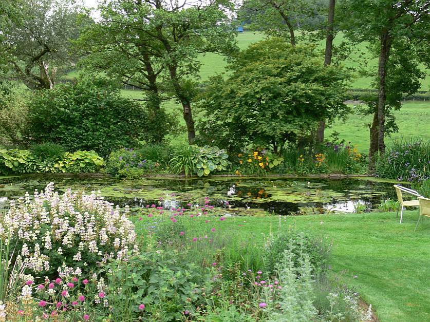 Un jardín acuático y gran estanque silvestre que ofrece un adecuado «punto final» en la parte inferior de los jardines y también hay un jardín de corriente y dos más pequeños estanques koi formales .