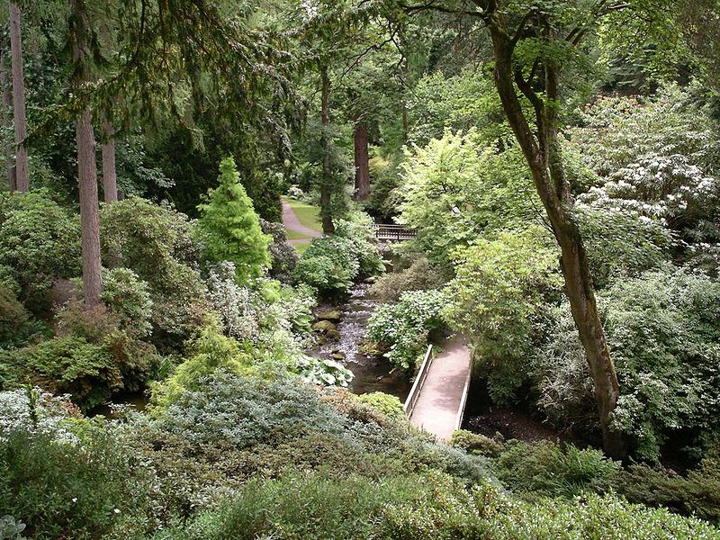 En el extremo sur del parque, mezclado con pino silvestre antiguo, está el jardín del rododendro, una de las mejores colecciones de Gales, que incluye además varias magnolias señoriales.