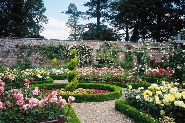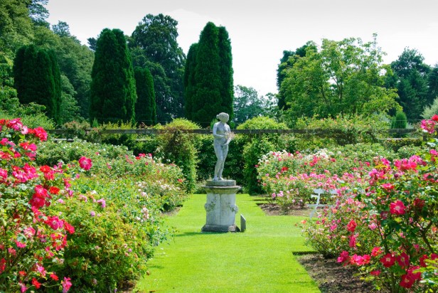Al igual que el Walled Garden, el jardín de rosas sigue un diseño formal, con cuadros de plantación bordeadas por setos de cobertura. Aquí hay, rosas de todos los tamaños, formas y colores se pueden ver al final del verano.