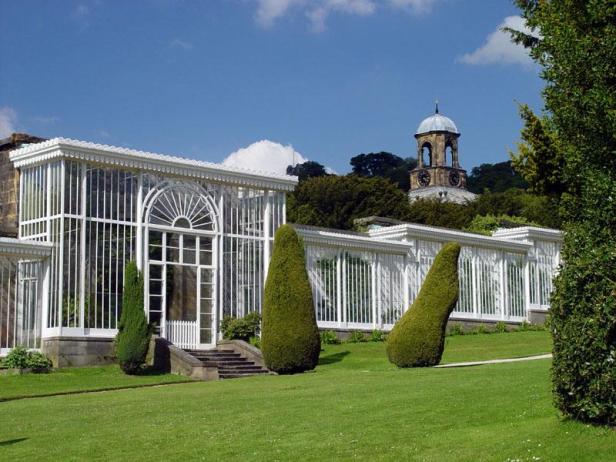 El Muro de los invernaderos es un conjunto de invernaderos que se ejecutan por la ladera del Templo de Flora a la cuadra en la pared norte del jardín. Una sección central de altura está flanqueada por diez secciones más pequeñas. Se utilizan para cultivar frutas y camelias.