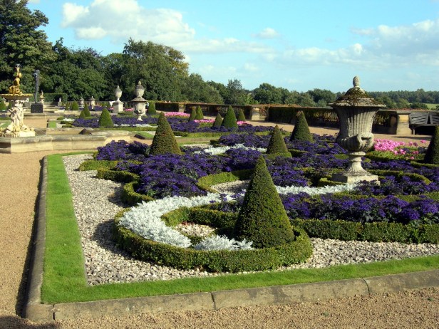 Un toque formal se puede encontrar en el lado oeste de Sledmere Casa en la forma de un parterre formal. Aquí se muestra las plantas de primavera y verano y crean una explosión de color dentro de un paisaje verde enmarcado con setos de boj y de tejo.