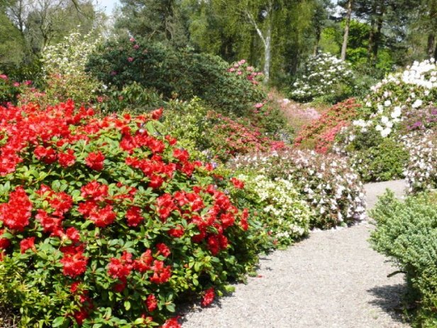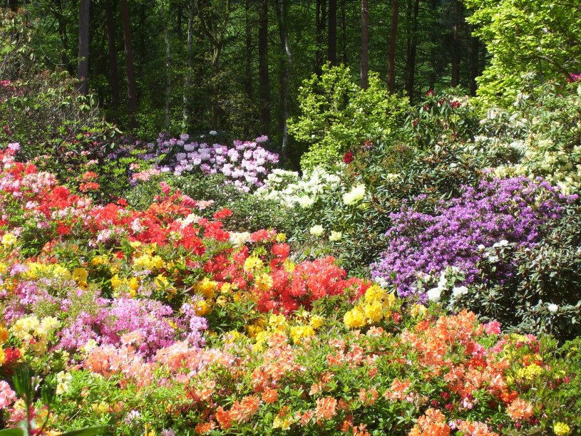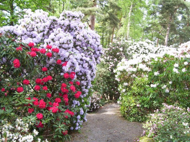 Un jardín arbolado que especializado en rododendros, azaleas y kalmias.