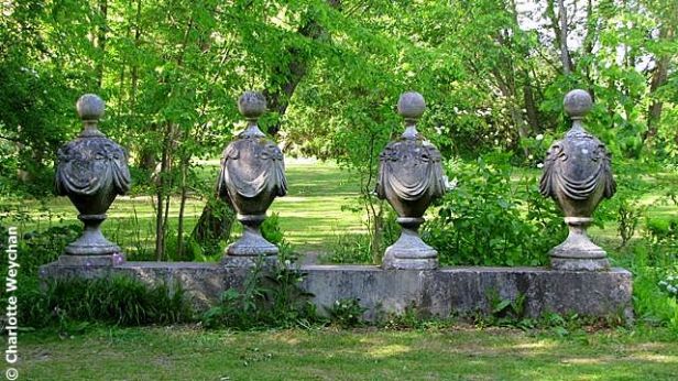 Los jardines están rodeados de una vieja pared de antigua similar a la casa y contienen un paseo vides, una enorme extensión de glicina , el foso y el muro a pie, y la vieja morera en torno al cual gira una profecía de la familia.