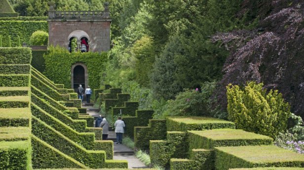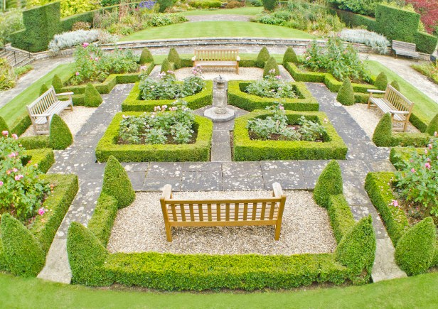 Los jardines fueron construidos en una serie de «salas», que están separadas entre sí por setos altos, prolijamente cortados al ras y setos de tejo.
