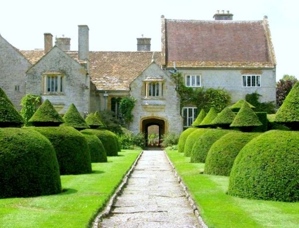 El Jardín Apóstol .-Este se alinea en la puerta principal en el frente oriental de la casa y la torre de agua, que fue construido por el Jenners en imitación de la del palomar en Avebury Manor