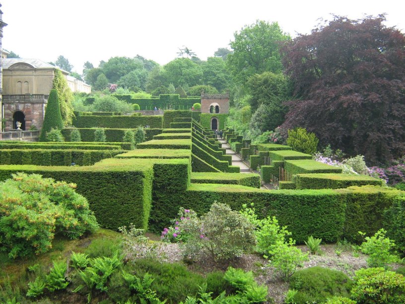 Los jardines fueron construidos en una serie de «salas», que están separadas entre sí por setos altos, prolijamente cortados al ras y setos de tejo.