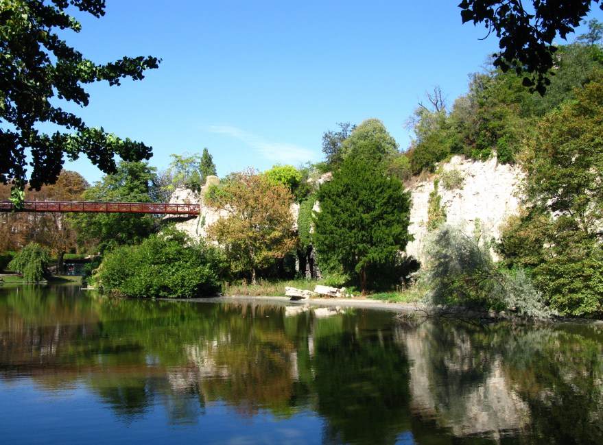 En el sur del parque de Buttes-Chaumont , este parque de estilo Inglés construido a finales del siglo XIX cubre 15 hectáreas .