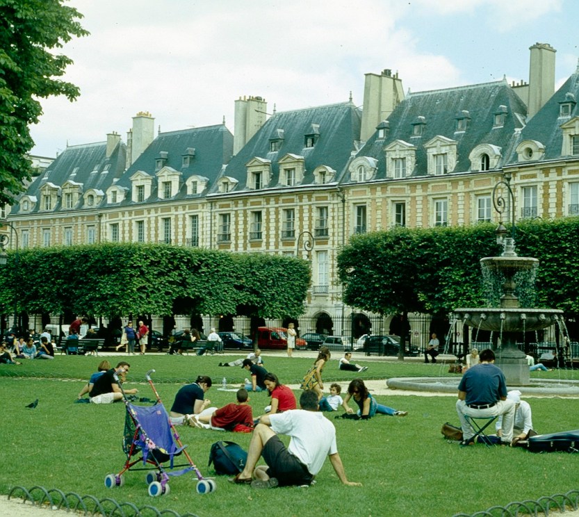 La Place des Vosges, inaugurada en 1612 con un gran carrusel para celebrar la boda de Luis XIII y Ana de Austria , es el prototipo de todas las plazas residenciales de las ciudades europeas que iban a venir.