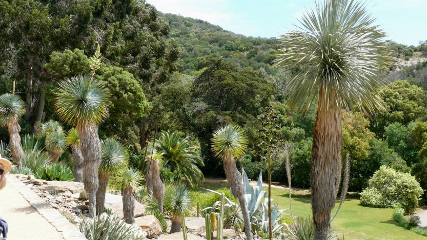Este primer jardín contenía agaves , eucaliptos , brezos , mimosas , palmeras y otros árboles mediterráneos.