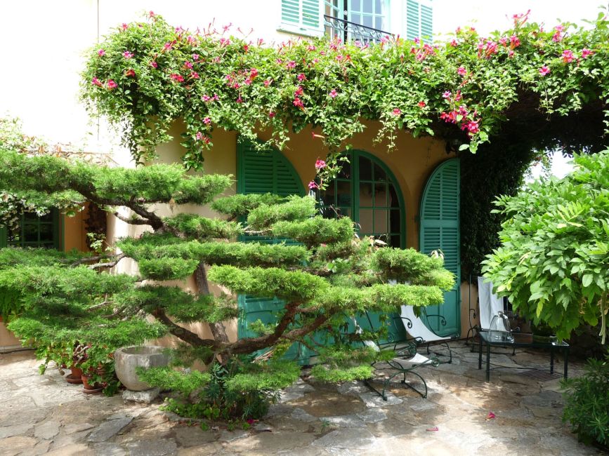 En el lado este de la villa es un jardín de plantas nativas de la Provenza y un jardín con adornos de porcelana de Sèvres.