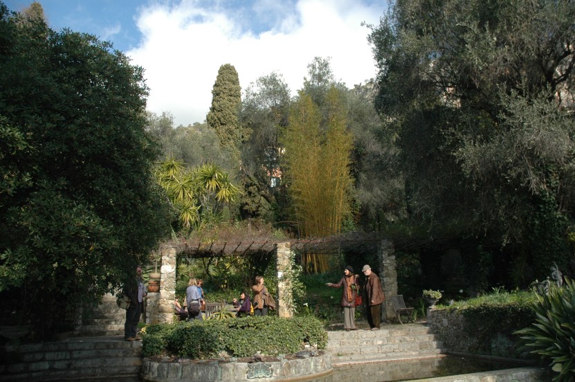El jardín de Florencia, frente a la rada de Villefranche, tiene una gran escalinata, una gruta artificial, y un efebo de mármol
