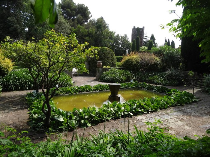 El jardín español cuenta con un patio con sombra y una fuente, con plantas aromáticas, ánforas catalanas , y un banco galo-romano.