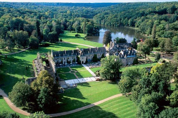 El parque contiene una casa solariega del siglo XVI y un castillo en el estilo de Luis XV del siglo XVIII.