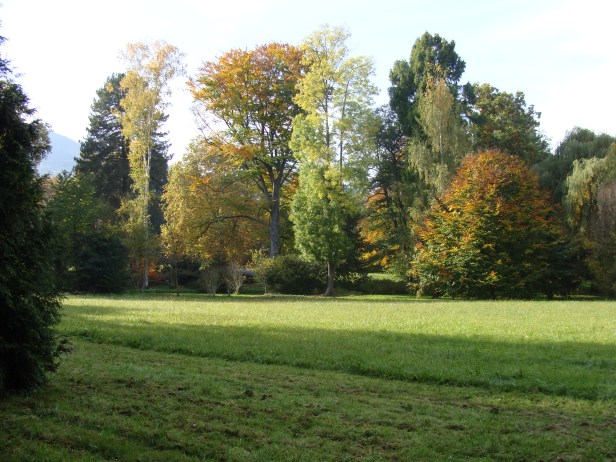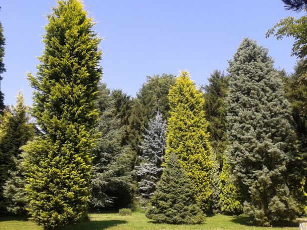 – Los árboles en Europa: muchas variedades de abetos, piceas, pinos, cipreses, robles, fresnos, hayas, castaños, plátanos, arces, etc….. entre las hayas péndulas de más de 20 metros de altura hay un gran cenador 15 m de diámetro.