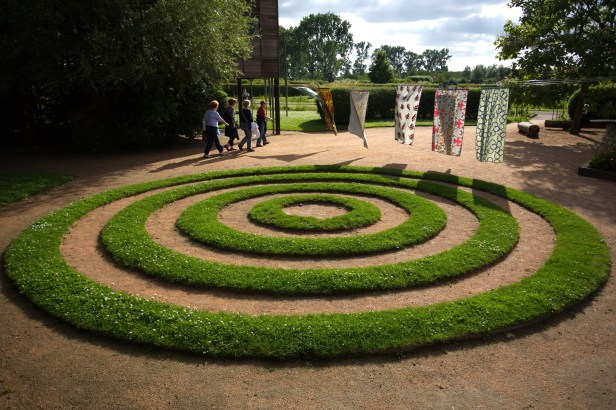 El plan del jardín se basa en la forma particular de la tierra. Tiene la forma de un triángulo largo que evoca la punta de una flecha. El triángulo está atravesado por una línea imaginaria donde los elementos característicos sucesivos: un jardín redondeado vegetal, un laberinto gigante perenne, la arboleda original y, finalmente, un árbol notable, un árbol de tulipán.-Liriodendron tulipifera.-. Se pueden distinguir dos zonas masivas, situadas a ambos lados de la línea imaginaria que se mencionó anteriormente, intercaladas con sendas cubiertas de hierba. Este diseño particular se inspiró en el diseño de un jardín de André Le Nôtre. Esta aplicación permite a declinar en una estructura de red que asegura la cohesión de todos, varios estilos o temas gracias al diseño: jardines color, cura, masa de hojas grandes y pequeñas, masas, tema vertical, etcétera