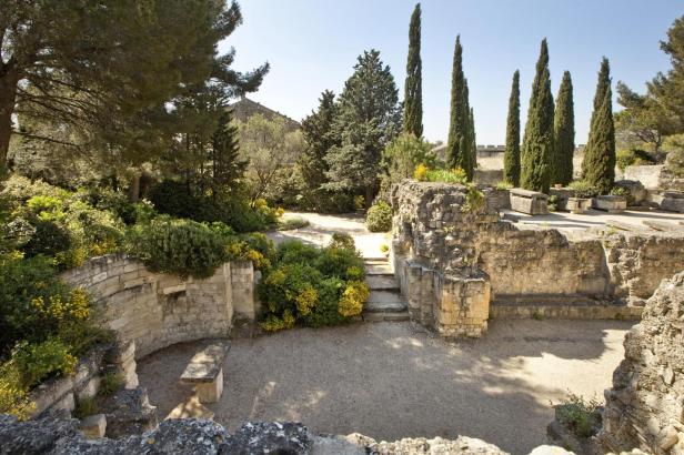 Un sitio único cuya historia se remonta al siglo VI. Situado en el Monte Andaon en los imponentes muros de Fort St-André, la abadía benedictina y el Real domina el Ródano y frente a la ciudad papal en el otro lado. Fundada en el siglo X, su origen se remonta a Casarie, un santo que vivió como ermitaño en una cueva en la cima de la colina. La forma de terrazas, jardines «Renaissance Tuscany» y la propagación del Mediterráneo, entre los restos de las iglesias románicas y las tumbas de la Edad Media dejando descubrir macizos de flores de rosas antiguas, plantas y árboles mediterráneos de pinos y olivos. Las terrazas ofrecen una vista excepcional del palacio de los Papas, los Alpilles, el Luberon, el Mont Ventoux y el Dentelles. El palacio de Abbey rediseñado por Pierre Mignard, arquitecto del rey Luis XIV, refleja el esplendor y la elegancia del siglo XVII y XVIII. Todo aquí insinúa el pasado importante de este lugar potente y armonioso, trampolín de la imaginación.