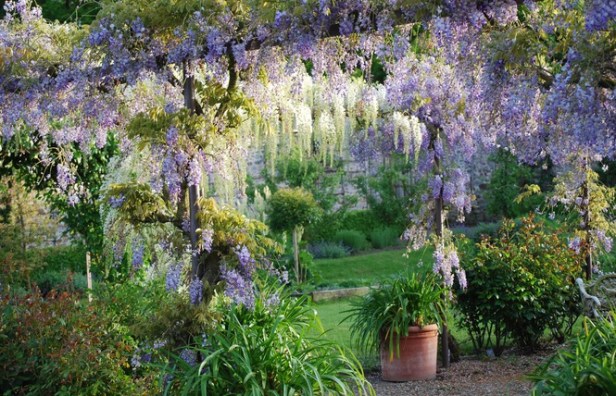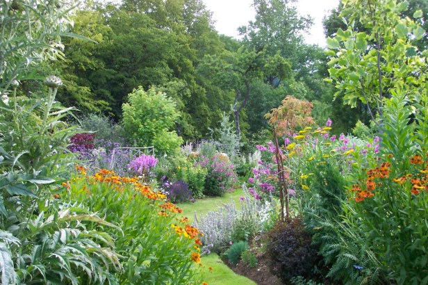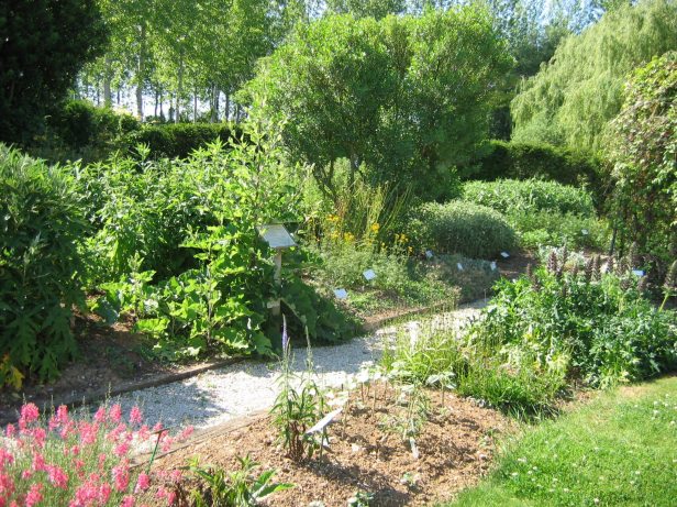Arboles notables: una Sophora japónica (250 años), roble, tilo, árboles de alineación de haya: Tilos, robles viejos, árboles frutales: manzana, pera, cereza, ciruela .Arbustos: plantas de acebo, viburnum, injertado encantos perennes: peonías y Colección de herbácea, v rosas antiguas ,flores anuales: cleomes cosmos, correhuelas, datura.