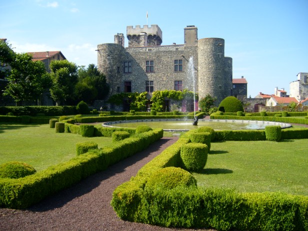 La propiedad de los recuentros y delfines Auvergne, este castillo construido a finales del siglo XI se transformó en el siglo XVII, cuando Antoine de Ribeyre, Tesorero de Francia, lo adquirió. Se transformó la fortaleza en el gusto de la época por la perforación de la fachada de grandes ventanas con parteluces. Estos jardines fueron creados en 1613. Desde entonces, los jardines de parterre han desaparecido. Permanecieron dos jardines en terrazas ajardinadas en el estilo francés.