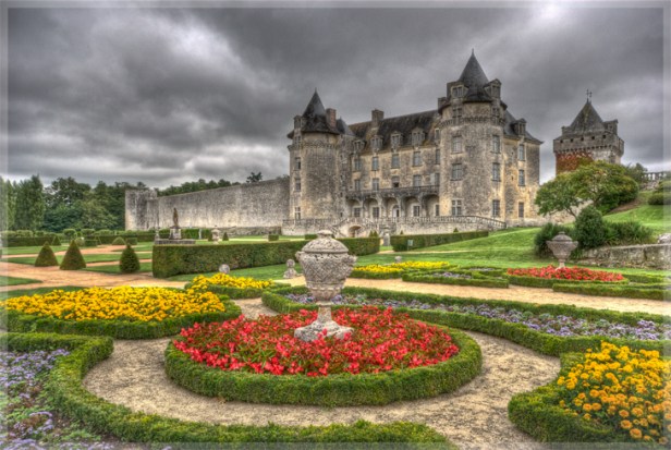 En el parque del castillo construido alrededor de 1480 – ISMH – más allá del jardín francés que lo rodea, antes de entrar en el mundo mágico de las fuentes, el jardín azul anima a los vastos prados y armoniosa composición fragante que exhala los aromas de lavanda, romero, perowskia, tomillo, hojas de acanto, cuerpo a cuerpo con las de eucaliptos y pinos en el viento … aún más, bajo las sombras frescas nacen bellas y abundantes fuentes naturales con el extraño color azul : las Fuentes misteriosas azules y las leyendas. sitios clasificados. Caminar, pasear a discreción del visitante a través de las 13 hectáreas del parque, el jardín azul y el defragancias, descubriendo legendarios Bleues Fontaines, la paloma (1740) a 1.500 nidos barrieron su escalera giratoria y para los amantes de las viejas fachadas de piedra gótica y el castillo del renacimiento , antigua residencia de los obispos de Burdeos, da la bienvenida en las degustaciones del salón.