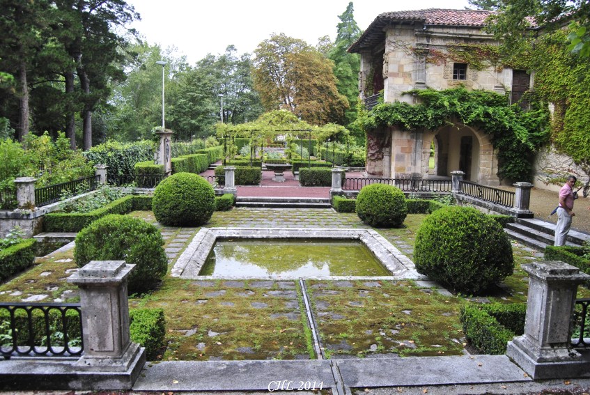 La finca perteneció al hombre que descubrió las cuevas de Altamira, Don Marcelino Sanz de Sautuola (1831-88), pero no da muestras de su interés por el arte rupestre. El actual jardín se comenzó con un diseñador de jardines de Sevilla (Javier de Winthuysen) en el 1930, usando un estilo renacimiento . En la década de 1980 este se cubrió con un diseño moderno, por Carmen Añón, utilizando acero y espejos para crear un personaje más sugerente.