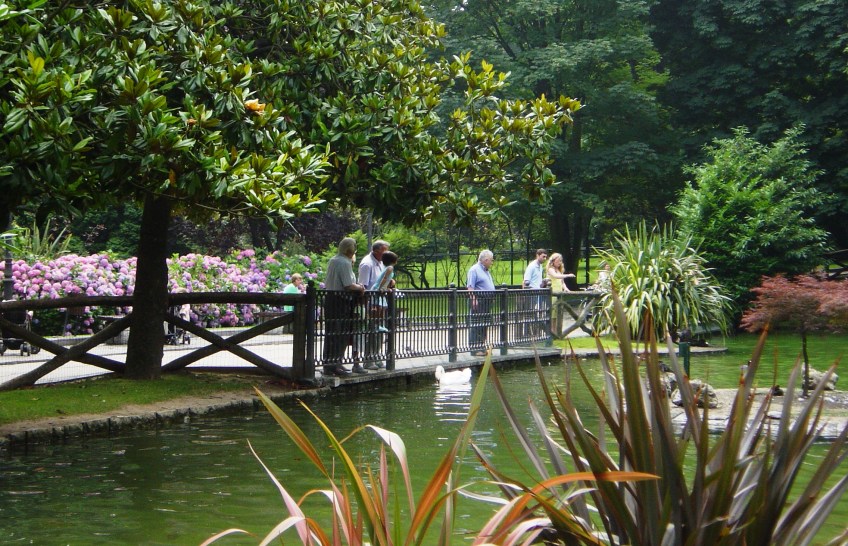 Es un parque muy bien cuidado con muchas plantas, césped y árboles. Hay muchos senderos de cemento para distribuirse por él. Hay mucho césped donde la gente toma el sol.