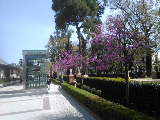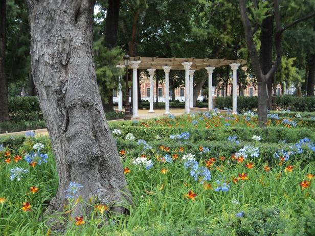 En la última restauración llevada a cabo en el año 2010 se introdujo por primera vez en la jardinería urbana sevillana el Árbol del amor de Canadá.-Cercis canadiensis.
