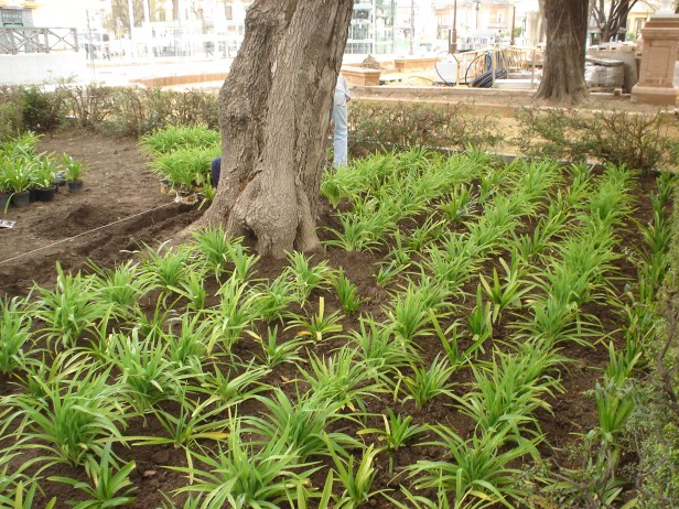 En cuanto a la jardinería se hace necesaria la replantación de la hiedra como cubresuelos,el arranque y abonado de las clivias para su reproducción y nueva plantación así como los Hemerocallys.Las plantas liliáceas precisan cada tres o cuatro años ser subdivididas y plantadas de nuevo en terreno previamente abonado.