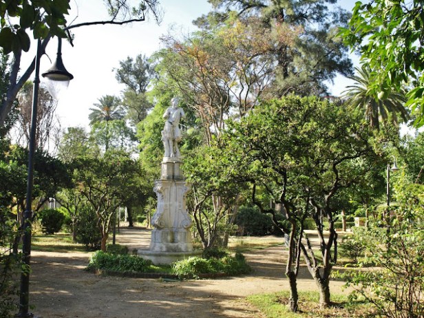 Los jardines del Palacio de San Telmo se proyectaron según el gusto de le época, cuando el jardín paisajista o jardín ingles estaba de moda, impregnado de escenas romancistas. “abundaba lo apaisado, lo pintoresco, el aspecto natural”; según nos cuenta la historia, se instalaron restos arqueológicos.