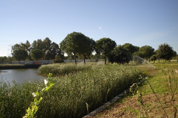 El agua para el riego de todo el Parque procede de una nueva captación realizada en el Rio Guadaira lo que garantiza el riego para la conservación de la gran superficie de verde instalada.