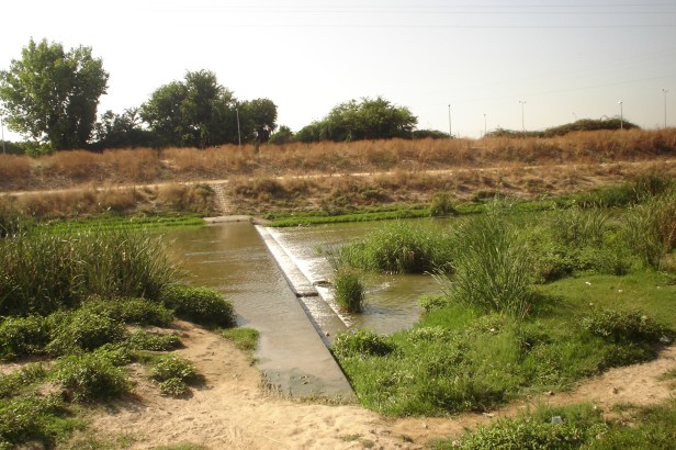 Dentro del cauce próximo a los humedales colonizan los Juncus efusus.-junco, Typha latifolia.-enea, Iris pseudoacorus.-Lirio amarillo y como no el Phragmytes australis.-carrizo, apareciendo también algunos Salix spec.-sauce, Vitex agnus castus.-sauzgatillo y Cyperus alternifolius.-paragüitas ,plantas propias de arroyos y humedales.
