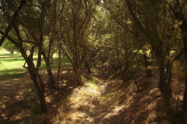 Las márgenes del paseo cubiertas de vegetación autóctona con la incorporación de Schinus molle.-Falsa Pimienta y nacidos árboles del cielo.-Ailanthus altissima.
