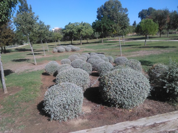 Pocos arbustos en esta zona solo unos palmitos.-Chamaerops humilis y agracejo rojo.-Berberis thunbergii var atropurùrea y cotoneaster.-Cotoneaste salicifolia con alguna yuca.-Yucca elephantipes y arrayanes.-Mirthus communis dispersos en varios grupos.