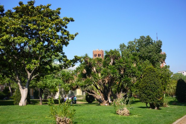 Alrededor del resto de plazoletas rodeadas por bancos encontramos tamarindos (Tamarix gallica), olmos (Ulmus pumila), tilos (Tilia tomentosa), aligustre (Ligustrum lucidum) y también algunos olivos (Olea europaea). En la parte más sombría de los jardines hay una palmera, una gran yuca (Yucca elephantipes), cerca de tres álamos (Populus alba) y dos grandes pinos.