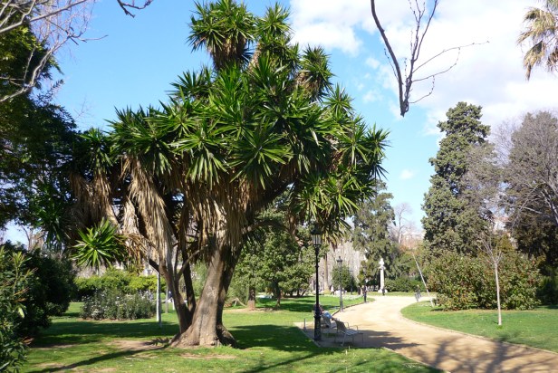Los enormes pinos carrascos (Pinus halepenssis) y pinos piñoneros (Pinus pinea), los altísimos cipreses (Cupressus sempervirens) y las majestuosas palmeras de Canarias (Phoenix canariensis), son algunos de los ejemplos.
