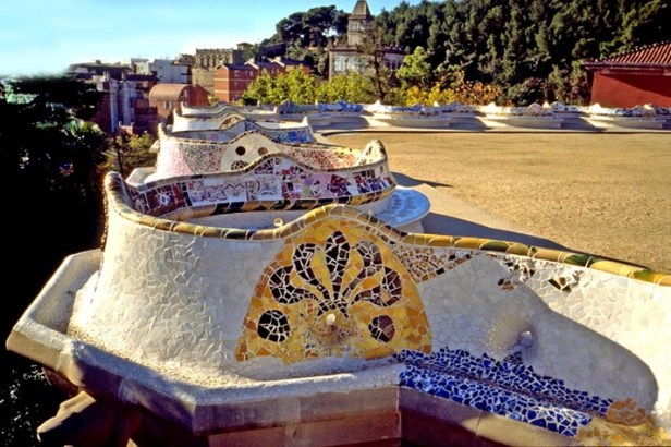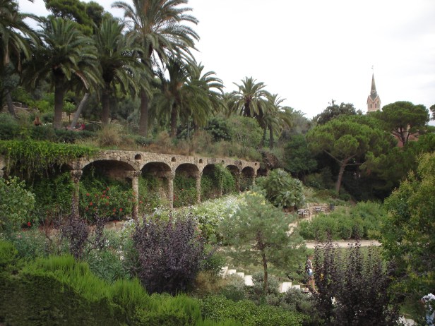 El recorrido nos llevará hasta dos obras de Antoni Gaudí: una pérgola parabólica cubierta de enredaderas -de hecho, un umbráculo- y, en un pequeño rincón, la fuente de Hércules, con una cabeza de dragón de hierro forjado de donde mana el agua.