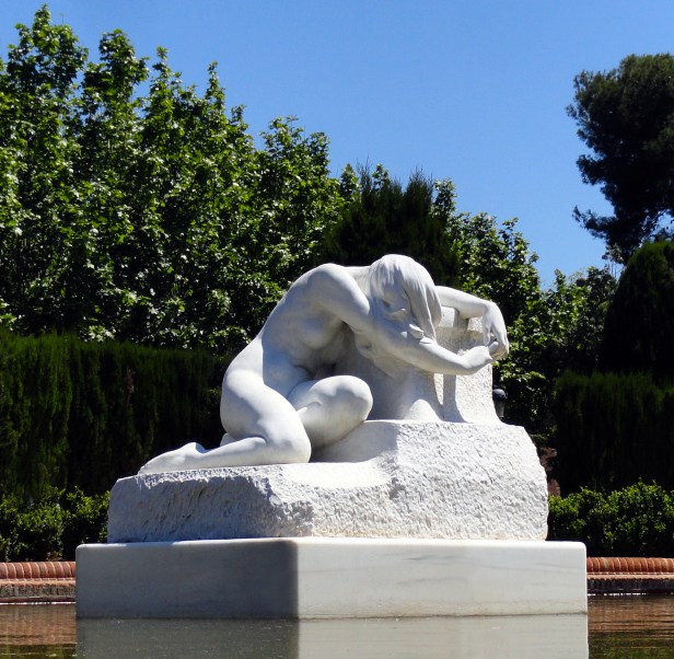 Arte y arquitectura .-Dentro del agua del canal que se inicia a la derecha de la entrada de los jardines por la calle Santa Amelia, yace, boca abajo, Ofèlia ofegada (Ofelia ahogada), una escultura en bronce de Francisco López Hernández del año 1964.