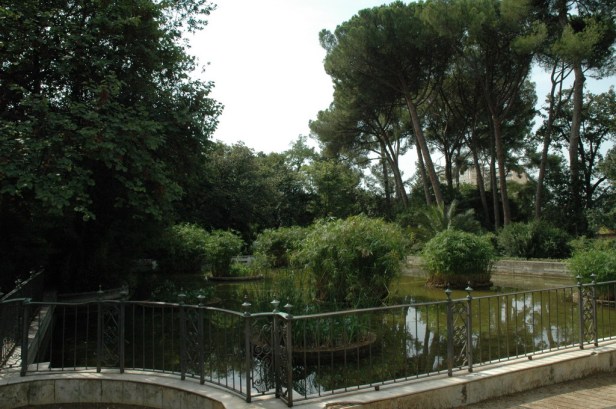 Está presidido, juntamente con la alberca, por una escultura de la ninfa Egeria.
